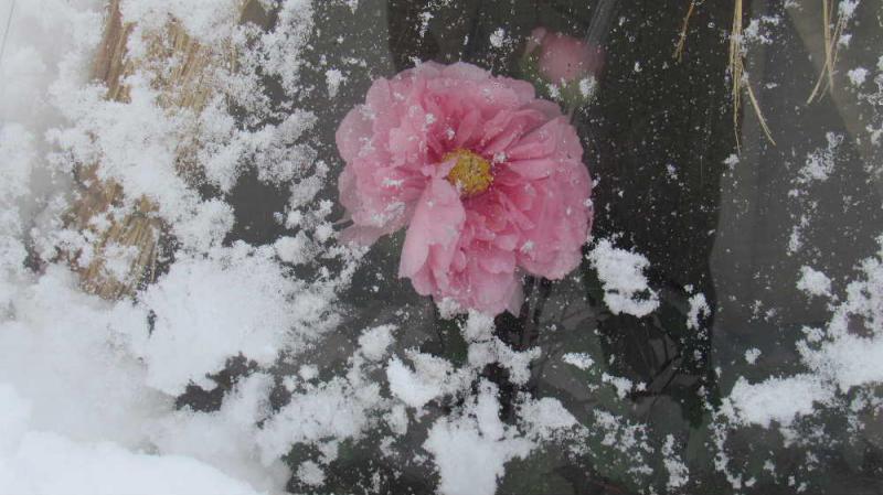 ●冬咲きボタン祭り ようやく峠を越したのでしょうか穏やかな朝を迎えました 連日の雪片付けで疲れ切っていますのでほっとしています 雪の風景でなく花が見たくて昨日雪の中を高畠町の冬咲きボタン祭りにでかけました 多い雪のせいか写真を撮るのも四苦八苦しながら撮った2枚です 花が透明のボードで被われ華やかな牡丹ではありません 早く自然に咲く花が見たくなりました