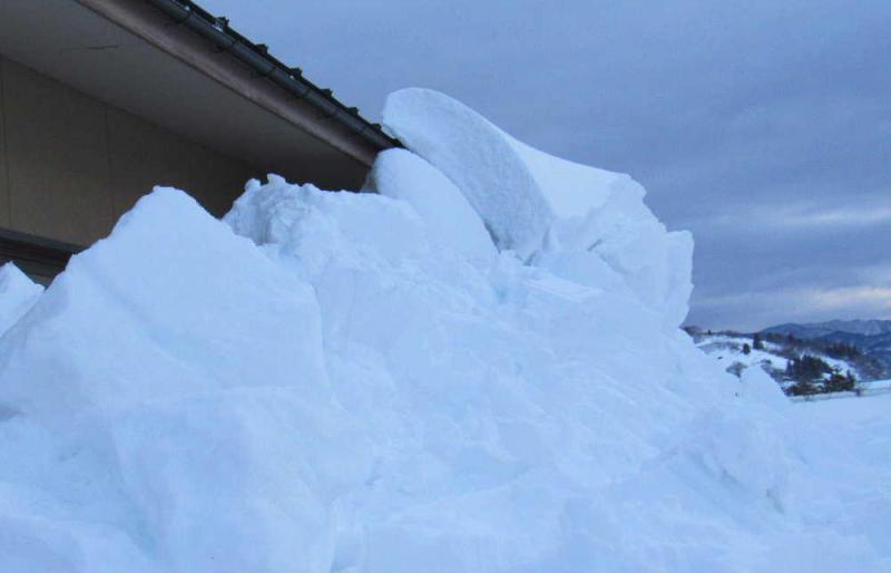 ●ようやく雪がおさまり今朝は雨模様です 昨日からの暖かさで雪が解け隣地のガレージの屋根のから落ちた雪が屋根と続いてしまいました 怖いです でもまた冬型の気圧配置でま冬型になりまた雪が降りそうです