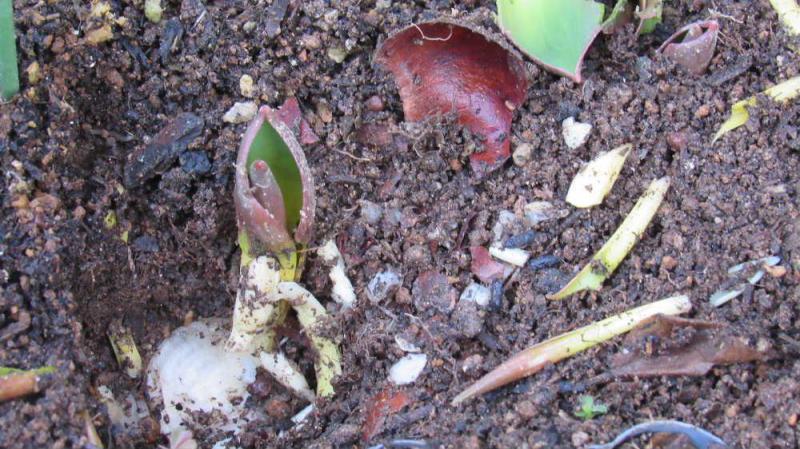 ●悔しい 無残にもネズミにかじられたチューリップの芽 昨日このブログで紹介したチューリップの芽が今朝みたら無残にも芽がかじられ球根を掘り起こしています ようやく雪が消えた日当たりのよい場所に芽を出し楽しみにしていたのですがネズミがかじったのだろうと思われます 3月ですがまだまだ積雪が多く餌も少なくネズミに見つけられたのでしょうか 一斉に早く雪が解けてくれないと困ります