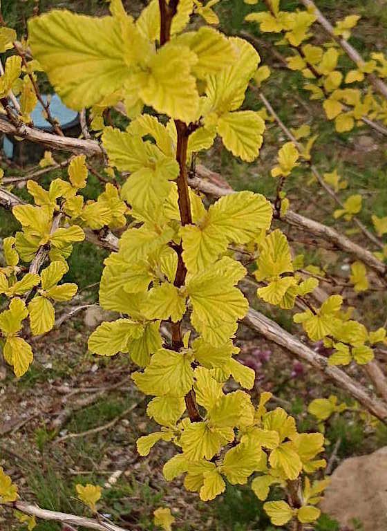 ●春の花のような黄色の花が咲いていると近づいてみるとなんと花ではなく葉っぱでした 不思議な黄色の葉っぱで調べてみてもなんという木であるかわかりません だれか知っている人はいませんか