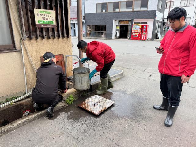 一年に一度、各施設に源泉が決まった量でしっかりいっているかどうかを計る作業があります。施設数も多いので、一日で回ることが難しく、2日間かかりますが、間違うわけにはいかないので、しっかりと調べます。有限で大事な資源である温泉、湯量も無限大ではないので、大事に守っていきたい。引き続き、がんばります〜