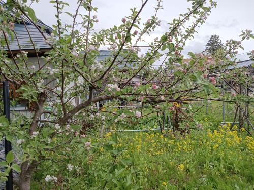 ●我が家の菜園リンゴの花