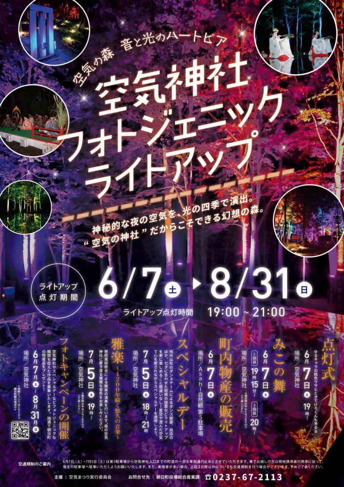 【空気神社ライトアップ2025】朝日町の幻想的な夜を満喫!日程・イベント・FAQ body { font-family: 'M PLUS Rounded 1c', sans-serif; background-color: #f4f6f9 !important; color: #333; font-size: 16px; line-height: 1.8; margin: 0; padding: 0; } a { color: #003366; text-decoration: none; } a:hover { text-decoration: underline; } .section-fade { opacity: 0; transform: translateY(20px); transition: opacity 0.8s ease-out, transform 0.8s ease-out; } .section-fade.visible { opacity: 1; transform: translateY(0); } { "@context": "https://schema.org", "@graph": [ { "@type": "Event", "name": "空気神社フォトジェニックライトアップ 2025『空気の森 音と光のハートピア』", "startDate": "2025-06-07T19:00:00+09:00", "endDate": "2025-08-31T21:00:00+09:00", "eventStatus": "https://schema.org/EventScheduled", "isAccessibleForFree": true, "description": "山形県朝日町の空気神社で、夜の森が光の四季によって美しく照らし出される幻想的なライトアップイベント。", "image": [ "https://ssl.samidare.jp/~lavo/yamagatakouiki/box/IMG_3632.jpeg", "https://ssl.samidare.jp/~lavo/yamagatakouiki/box/IMG_2099.jpeg", "https://ssl.samidare.jp/~lavo/yamagatakouiki/box/IMG_2120%282%29.jpeg" ], "organizer": { "@type": "Organization", "name": "朝日町観光協会", "url": "https://asahimachi-kanko.jp/" }, "location": { "@type": "Place", "name": "空気神社", "address": { "@type": "PostalAddress", "addressLocality": "朝日町", "addressRegion": "山形県" } }, "subEvent": { "@type": "Event", "name": "スペシャルデー", "description": "雅楽の演奏、ダンスパフォーマンス、出店、七夕短冊などでライトアップをさらに楽しめる特別な一日です。", "startDate": "2025-07-05T19:00:00+09:00", "endDate": "2025-07-05T21:00:00+09:00", "location": { "@type": "Place", "name": "空気神社" }, "organizer": { "@type": "Organization", "name": "朝日町観光協会" }, "performer": [ { "@type": "PerformingGroup", "name": "祭祀楽研修会" }, { "@type": "PerformingGroup", "name": "地元ダンスチーム" } ] } }, { "@type": "FAQPage", "mainEntity": [ { "@type": "Question", "name": "駐車場はありますか?", "acceptedAnswer": { "@type": "Answer", "text": "はい、空気神社周辺に無料駐車場がございます。ただし、特にスペシャルデーなどの混雑時は満車になる可能性がありますので、お時間に余裕をもってお越しいただくか、乗り合わせでのご来場にご協力ください。" } }, { "@type": "Question", "name": "雨が降った場合、ライトアップは中止になりますか?", "acceptedAnswer": { "@type": "Answer", "text": "ライトアップは小雨決行です。ただし、荒天の場合は安全を考慮して中止となる可能性があります。スペシャルデーの雅楽演奏など、屋外のイベントは雨天中止となる場合があります。" } }, { "@type": "Question", "name": "来場時に必要な持ち物はありますか?", "acceptedAnswer": { "@type": "Answer", "text": "会場は自然の森の中ですので、足元が暗く、夜は冷え込むことがあります。安全のため「懐中電灯」「歩きやすい靴」「上着」のご持参を強くおすすめします。" } } ] } ] } document.addEventListener("DOMContentLoaded", () => { const sections = document.querySelectorAll(".section-fade"); const observer = new IntersectionObserver( entries => { entries.forEach(entry => { if (entry.isIntersecting) { entry.target.classList.add("visible"); observer.unobserve(entry.target); } }); }, { threshold: 0.1 } ); sections.forEach(section => { observer.observe(section); }); }); 空気神社フォトジェニックライトアップ 空気の森 音と光のハートピア 夜の空気神社が、光の四季によって美しく照らし出され、幻想的な森へと姿を変えます。今年はライトの数や演出が大幅にバージョンアップ。他では決して味わえない、特別な空間が皆様をお待ちしております。 目次 イベント基本情報 7月5日(土)はスペシャルデー! Instagramフォトキャンペーン ご来場にあたってのお願い 空気神社とは? よくある質問 (FAQ) イベント基本情報 点灯期間:令和7年6月7日(土)〜8月31日(日) 点灯時間:19:00〜21:00 会  場:空気神社(山形県西村山郡朝日町) 7月5日(土)は、スペシャルデー! 7月5日(土)は、ライトアップをさらに楽しめるスペシャルデーとして開催予定です。地元山形のダンスチームによるパフォーマンスや、出店、七夕に合わせた短冊の設置など、盛りだくさんの内容でお届けします。また、19時には祭祀楽研修会による雅楽の演奏も行われます。夜の空気神社に響き渡る優雅な音色をお楽しみください。※雅楽の演奏は雨天の場合、中止となります。 スペシャルデー出店者一覧(予定) ロイフェンダチョウフランク、フランクフルト、ハムステーキ 朝日町総合産業開発玉こん、かき氷、雑貨 KaRa KaRa飲み物(ソフトドリンク・アルコール)、からあげ棒、玉こん、カレー、ルーローハン 近江屋ウサヒグッズ、光るおもちゃ、当てくじ 幸作りんご園リンゴジュース、リンゴゼリー、リンゴジャム、リンゴチップス、牛串 Instagramフォトキャンペーン 期間限定の光に包まれた空気神社で、Instagramフォトキャンペーンを開催します!美しいライトアップの写真を撮って、キャンペーンに参加しませんか?抽選で素敵なギフトをプレゼント! 応募期間:2025年6月7日(土)〜8月31日(日) 応募方法: アカウントを公開設定にして、朝日町観光協会の公式Instagramをフォロー。 ライトアップ期