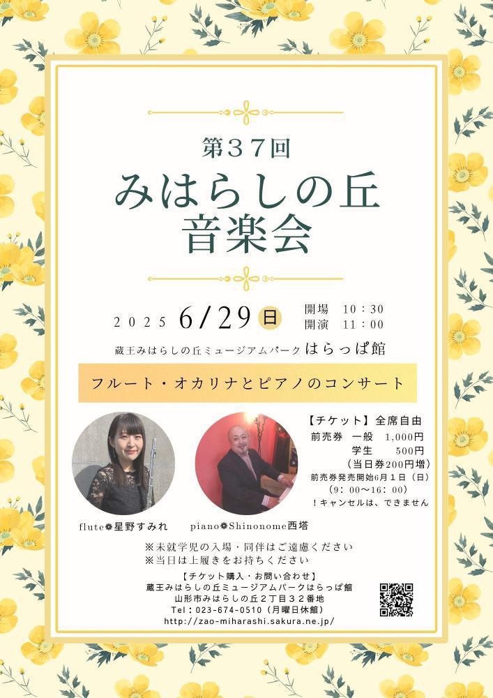 今回は、フルート奏者の星野すみれさんを招き、フルートだけではなく、ピッコロとオカリナの音色もご披露してくださることに。ピアノソロは、「Danny Boy」です。 このコンサートは、リピーターのお客さんが多いです。理由は、「心が癒される」や「元気になる」などの自分の心に栄養補給になるから、だと思われます。みなさんもいかがですか?添付のチラシをよくお読みになって、「はらっぱ館」または出演者からチケットをご購入ください!!