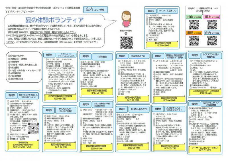 ●令和7年度【夏の体験ボランティア】キャンペーン! \庄内エリア情報/