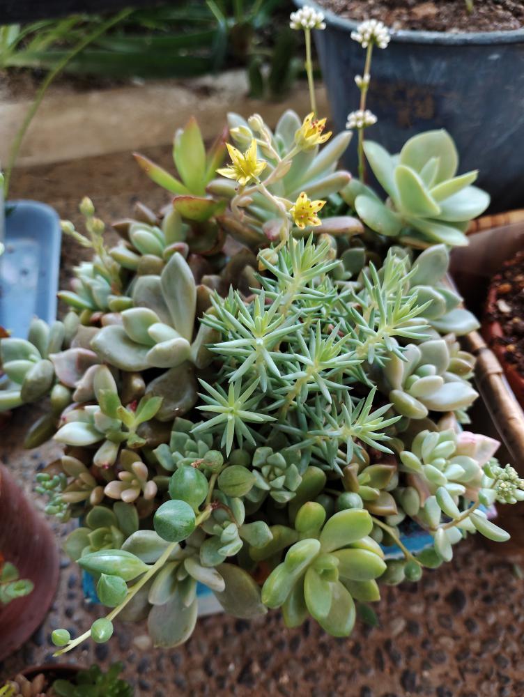 先日購入した多肉の寄せ植えにお花が咲きました!お庭で見せて頂いた 珍しい黄色い藤☆綺麗〜(〃'▽'〃)