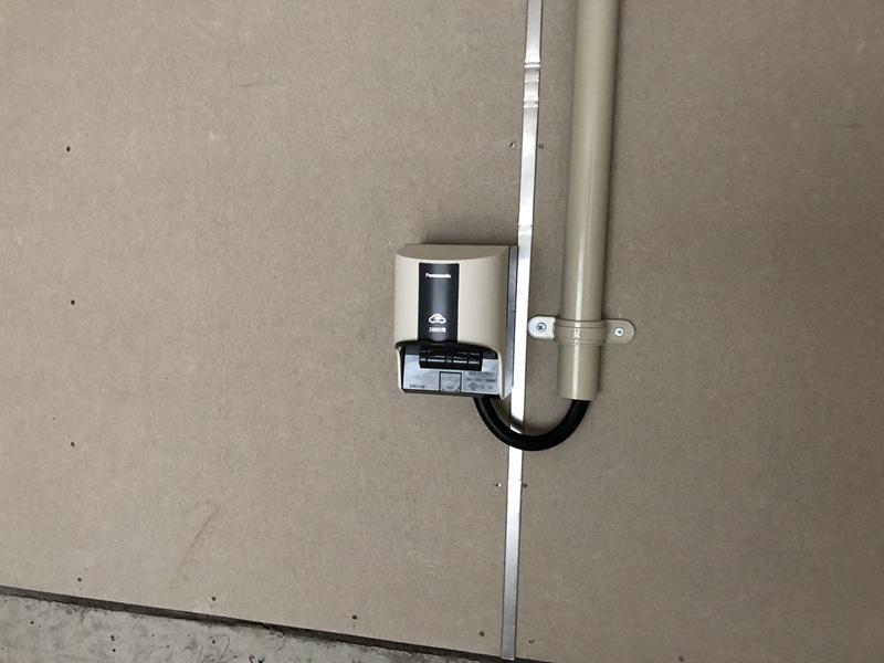 みなさんこんにちは。今回はお客様の車買い替えに伴い、EV用充電コンセントの取付工事をした事例を紹介します。インナーガレージが仕切り壁で二区画に分かれた駐車スペース(計三台分)に、将来的にもコンセントを増設することも想定して設備の配線工事をさせていただきました。ケーブルを通すパイプの太さを分けて、追加で配線できるようにしてあります。選ばれるメーカー、車種によって対応する設備にも差異がありますし、コンセント1台ごとに専用回路が必要です。電気自動車(EV)やプラグインハイブリッド車(PHEV)を取り巻く環境も変わろうとしていますし、先を見据えて工事を検討されるのもよろしいかと思います。