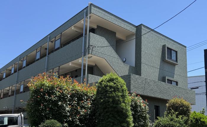 先週に続き、建物の外観を掲載します。緑の外観ですが、タイルのデザインは初めて見てシンプルでスッキリしているなと感じた所です。マンションの外壁はコンクリート打ちっぱなしかタイルが基本的に多いかと思いますが、単色で緑は落ち着いた感じと出窓などの凹凸でデザインしていると思いました。またこちらの建物は管理棟で入退室の建物になっているので、東京のセキュリティ対策がしっかりしているなと感じました。