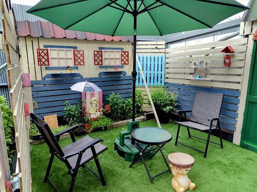 去年ちょっと紹介した『カフェテラス』2号がグレードアップして完成しました。旦那様のDIY素晴らしいです。 去年、初めて挑戦した旦那様お手製の『カフェテラス』1号2024/09/30のブログで紹介しましたが、振り返って・・・ 床のタイル貼り、大変だったようですが素敵な空間が完成!壁面は、ホワイトベージュ色。ピンクとシロの棚、そしてブルーの多肉棚〜♪Kちゃんは、癒しのエリアが出来て大満足でした(>_