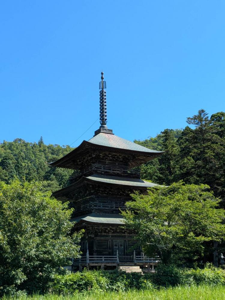 地区の方から、安久津八幡神社(高畠町)の三重塔のお写真を頂戴しました\(^o^)/夏の青空に三重塔が、映えますねー【撮影、写真提供:鈴木淳一様】