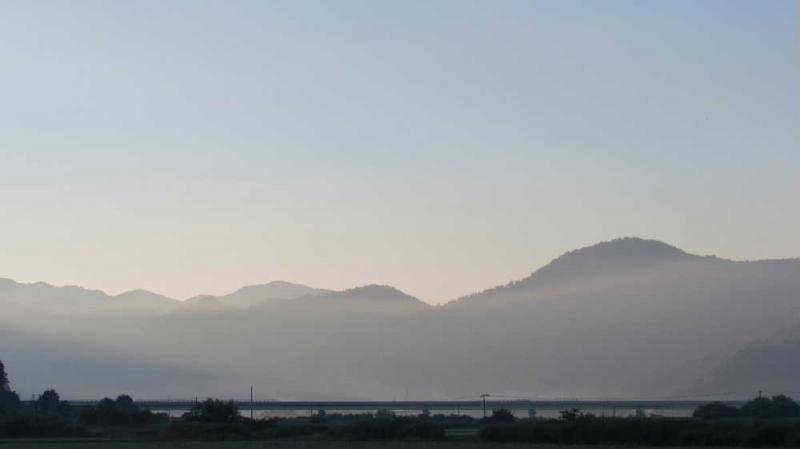 ●霧に浮かぶ山並みがきれいです 昨夜から今朝にかけて久しぶりの涼しさでエアコンなしでぐっすりと眠ることができました 今朝は東の山並みに下に霧が漂い幻想的な風景となりました 登った朝日に照らされた稲には朝露が米粒のように光り朝のさわやかさを物がっています 今日の最高気温の予報が34度で暑くなりそうです