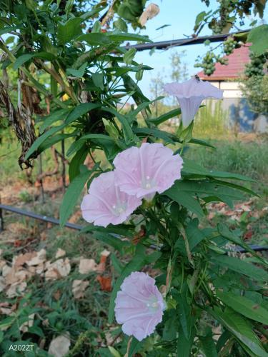 我が家の家の周り、畑の片隅に朝顔が元気に咲いている・・北海道から九州、朝鮮・中国に分布する多年生のツル植物。ヒルガオは地下茎を持っており、庭や畑などにかってに出てきている。昼に開花するので、昼顔の名前がついた。アサガオは日の出前に咲き、昼前にはしぼみ、ヒルガオは朝早くに咲き、昼間も咲き続けます、花の色は アサガオは青や紫など様々な色がありますが、ヒルガオは 薄いピンク色である・