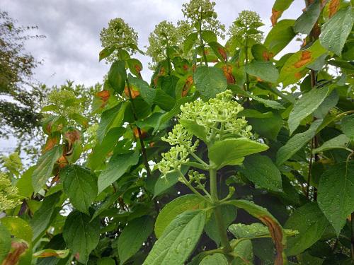 あの異常な暑い日が続いて、人も植物もからから、恵みの雨で潤いが戻って来ました。ここ長井もほかの地域に負けじと今朝の6時の情報では24時間の降水量が62.5ミリ! 朝はまだ雨、藪状態のグリーンガーデンになった!なんて会話をしながらリビングからの庭の風景を眺めながらの朝食。外に出て見ると雨も止んで、爽やかな風、気持ちがいい〜雨の後の庭仕事もやる気スイッチ入ったのですが…午前中は、庭をグル〜と。写真を撮るだけで終わってしまいました…じーじは、久しぶりの散歩へ。 午後は、蒸し暑くなりましたが。思い切って庭仕事。藪状態のところを、せっせと刈込・・・もう汗でびっしょり、無理しないで今日の仕事はおしまいにしました。熱中症に注意デス。 (トップ写真)は・・・今の時期、我が家での代表選手の”ピラミットアジサイ”水不足で葉も枯れ始めてしまいましたが、恵みの雨で何とか持ちこたえ花も咲き始めました。(赤いところは枯れた部分)よかった! ↓こちらも、秋の花の代表選手〜”青色フジバカマ"根っこで増殖、増え過ぎ注意です。”白色フジバカマ”は、これからです。白は中々増えないので貴重です。 7/31に登場した”ヘレニウム"もう満開状態〜夏らしい♪ 毎年、お馴染み”リグラリア” ↓”フロックス” 白花はいいですね。いい所撮りですが、他の色と長く咲いてくれています。 ”アリウム・ミレニアム” ↓”ルドベキアタカオ”増え方が半端でないですが夏の庭を元気にしてくれています。雨で倒れて凄い状態でしたが朝のうちにじーじがメンテしてくれました。 ここは何とか維持していますが・・・ ここからが藪状態に・・・それぞれの花が、競って咲いてくれたので、雨で通路がわかりません。 早い時期に切り戻し終わった花は、もう根元には新しい葉が出始めています。 他の花も、早く切り戻ししてスッキリした庭にしたいです。天気次第ですね(^^) 暦では、もう立秋、日も短くなってきました。今日は長くなってしまいました。遅いので、あした(8/8)の更新です。