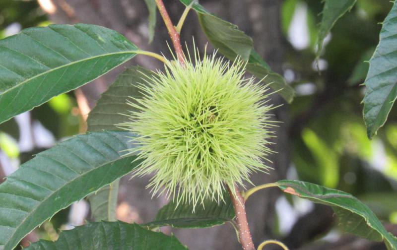 ●早朝の強い雨もおさまりこころなしか少し涼しくなりました どっかに秋の兆しも感じますが でもこれからも暑くなりそうです「クリ」の木にクリのイガをみつけました まだまだ青く実を収穫するまでにはもう少し時間がかかりそうです 爽やかな秋が早く訪れてくれないかなあとクリの木に実るイガを眺めてきました