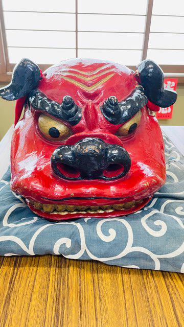 地区長さんにお願いして消防団で行なっている「獅子廻りの獅子頭」を拝見できた。