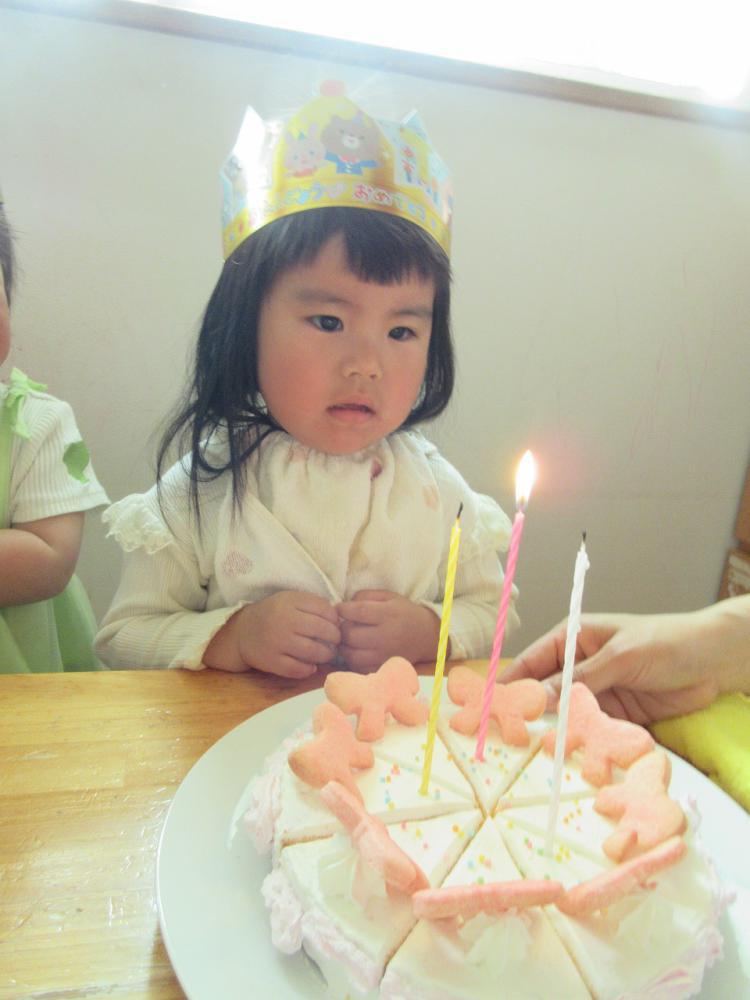5月生まれの誕生会を行い、8名のお友だちをみんなでお祝いしました。今月から年長組が司会、インタビューを担当。お誕生のお友だちは、一人歩きやリズム運動、鉄棒やブロック制作など得意なことを発表してくれました。職員の出し物お楽しみ″は『マジックショー』。「うわー、すごい」「なんで?」と歓声が上がり、マジックの世界に惹き込まれながら見て楽しんでいました。 5月生まれのお友だちおめでとうございます。