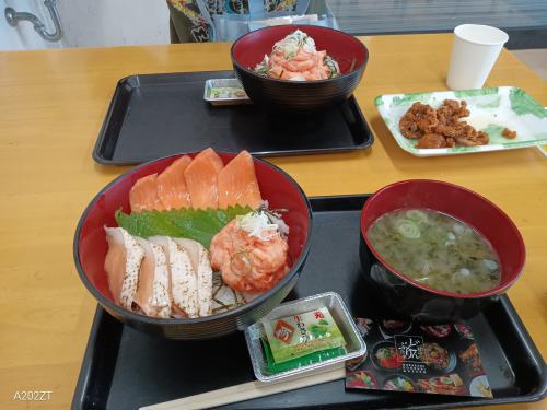 一昨日、新潟の笹川流れでバーベキュー食材をと途中の岩船港鮮魚センターに立ち寄る・・1Fと2Fに食べるところありますが、簡単に早く食べれる1Fファーストフードコーナーで昼食とした、ここのおにぎりや総菜も安くておいしいですね・・そばやラーメン、丼物など気軽に早く食べれる・・鮮魚センターは岩船港にあがった、新鮮な日本海の幸を提供している・・鮮魚は岩船港で水揚げされた活きの良い地物をはじめ、各地から旬の魚やカニなど、おすすめ品が盛りだくさん、自家製の干物もある・翌日よってお土産でもと思っていたが昨日は早朝雨が降り始め天気悪くならんうちに日が昇るまえに撤収して帰宅・・お土産の干物買い損ねてしまったね・・・