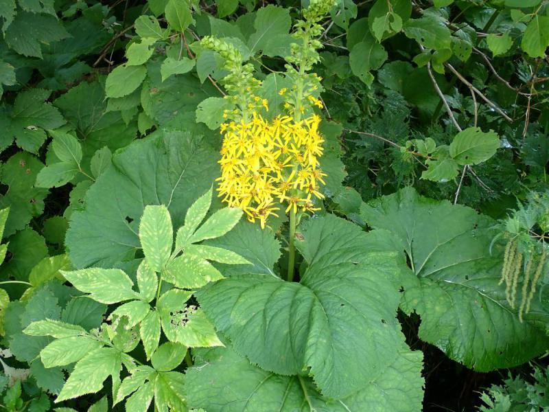 園内予約も少なく静かな雰囲気の博物園、開園当時ここ玄海広場は新築のため周辺は荒削りされ表面が土色緑無く惨憺たる物でした。在来の植物だけが大きいオタカラコウの葉と黄色いその花序が昔を思い出させてくれました。故結城先生は様相が大きいので志津の名を取りシズオタカラコウと呼ばせた時もありました。来園者も無く静寂。