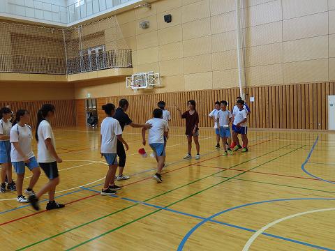 今日は町の5・6年生が第一小学校を会場に、陸上教室を行いました。リレー、フリスビー、縄跳びで、それぞれの基本を学びながら、交流しました。連続で入る練習です。一回縄の真ん中で両足着地するとリズムが止まります。駆け抜けて!回す人もぐぐらせるという技が必要です。バトンパスの練習です。実際に走って競争しています。合同チームです。来週には町の陸上大会もあります。フリスビーは投げ方が難しい。まっすぐに飛んでいきません。ねらいを定めてまっすぐに!他校と交流できた時間になりました。