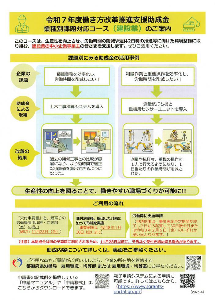標記助成金制度は、生産性を高めながら、労働時間の縮減や年次有給休暇の促進に向けた環境整備等に向けた取り組みを行う中小企業事業主の皆様を支援するものです。有効にご活用ください。