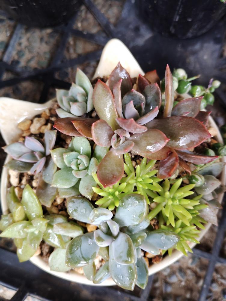 あいにく雨の三連休ですが、自宅の多肉ちゃん達には恵みの雨…と、せっせこお世話をしました。生長期なので、放って置いても元気に育っていますが、伸びたところを切って、他の鉢に寄せ足したり、土を被せたり、枯葉をとったり…あっという間に終わる作業ばかりなのですが、あまりに可愛すぎて、終わるのが名残惜しく、一人話しかけながら結局2時間も経っていました……(^-^;コワイ