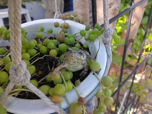 今日は一日雨で庭仕事も出来ず・・・今年は、サスケの世話で庭仕事もなかなか進まなかった年でしたが、17日に旅立ってからは、ぽっかり空いた心を埋めるように忙しい毎日で、じーじの庭仕事、冬じまいも進んでいます。 大鉢の土替えや屋内への取り込みなどの大仕事は取り敢えず終わりました。まだ雪囲いが残っていますが、お天気を見ながら少しずつですね。バラもだいぶさよならしたので今年は少しは楽になりそうです。  (トップ写真)の多肉、"グリーンネックレス" 何かいますよ〜 ↓一番の大物の"金宝樹"風除室に収まりました。  ↓ガーデンルームも「簡易温室」の組み立てを終え冬越しする鉢物も徐々に取り込み始めています。   先週は毎年恒例の業者への「ゴミ出し」終わりました。伐採した枝物、刈込んだ草花類で山になっていた捨て場がスッキリ!これからもまだ出てくるのですが、きりがないので来年へ。    庭の”ガーデンマム"二色マム(バイカラー)きれいなところを撮ってみました。   ↓こちらはちょっと背の高いマム   ↓コボレダネの"ポリジ"通路の所々に出ている苗をじーじがせっせと集めて庭の隙間を埋めています。根が直根なので移植時は弱ってしまいます。  おまけに・・・ もう終わりの"グラス"と"フジバカマ"を活けてみました。家の中でも秋を感じることが出来て、いい役目をしてくれています。お店から求めたら凄い金額だと思います。じーじに感謝〜