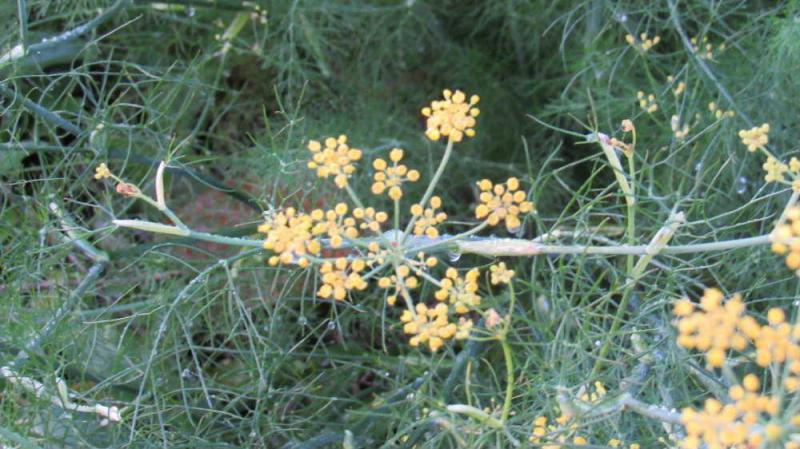 ●散歩で見つけた黄色の小さな花は「フェンネル」という花でしょうか 茎が密生して全体が枝分かれし葉片が糸状に細く写真で見るように鮮やかな緑色をしています 黄色い小花が傘のように沢山咲いています ですがこの「フェンネル」は花期が7,8月で秋には実をつける植物であると説明されています とするとこの花は何という花でしょうか?