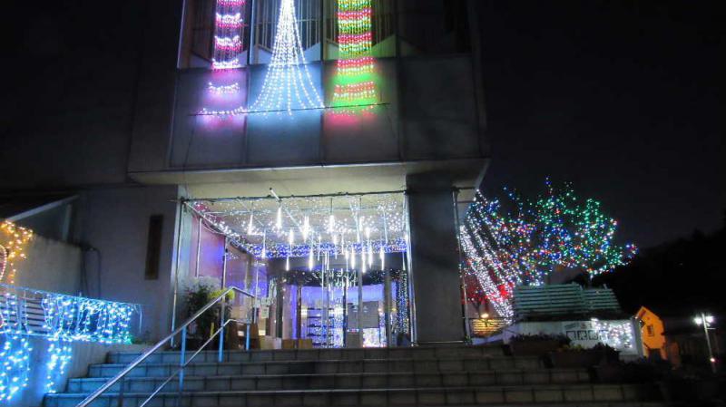 ●12月にはいり雪も降りクリスマスの季節になりました 毎年赤湯公民館のイルミネーションが点灯されクリスマスの雰囲気を醸し出してくれます 全国各地の有名なイルミネーション比べると程遠いものですが街を元気づけてくれるものです 今から20年ほど前に緑町公園の木にイルミネーションを飾ったのが始まりでその後公民館がえくぼプラザに移り現在のイルミネーションの形となりました 地域の若い人たちの力で年々盛大となってきました 今年のイルミネーションも見事に冬の夜空を照らし人々の心にぽかっと灯をともしてくれています