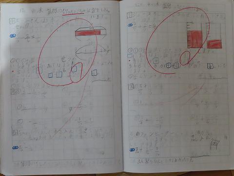 3年生の自学ノートの紹介です。一日で6ページをしっかりしてくる子供もいます。上の写真です。これを家に帰ってからの時間で行いました。3年生でこれはすごい。これが習慣づけば、学びの力は格段に伸びることと思います。同分母の分数の計算を3年生では習いますが、異分母になった場合について、考えてきた学習でした。自分なりに計算を速くするポイントも書かれています。自分なりに繰り返しの表現を使った詩を考えて作品を書いてきています。インフルエンザで休んでいた子どもですが、家庭でも充実した学習をしていました。すばらしいです。