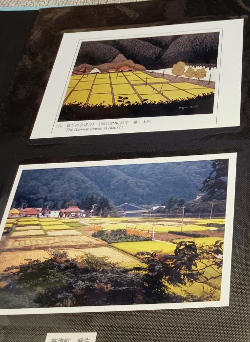 11月5,6日と西会津方面に旅行、会津西山温泉の”旅館中の湯”さんへ泊って帰りに斎藤清美術館そしてアトリエ館に寄り・・作品とその場所をめぐってきた。作品案内とあわせ、現地の写真がある・・意外と何の変哲もないとこでも作品になるとなんとも日本的な趣のある風景が引き立つのですね・・ほっこりするよな、そんな作風が好きですね・・斎藤清(1907〜1997年)は、福島県河沼郡会津坂下町出身の木版画家です。 独学で独自の木版画技法を確立したことが有名で、なおかつ浮世絵版画の技法や西洋作家の近代的造形を積極的に取り入れ、独自の日本的感情を表現したことが高く評価されてます・・