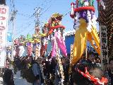 ぼんでんとは、5mほどの細長い丸太の先に、円筒形の竹カゴをとりつけ、その上に干支や流行のものを色彩あでやかに飾るもので、重さは30kgにもなるという話でした。