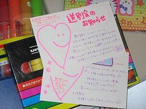 人三倍くらい元気につくし会を支えてくれた3年生もめでたく高校を卒業。感謝?の気持ちをこめて10日(土)に送別会を行います。招待状を作り、ご馳走を作る計画をたてました。さあ、どんな料理ができるか、次回の記事にご注目。