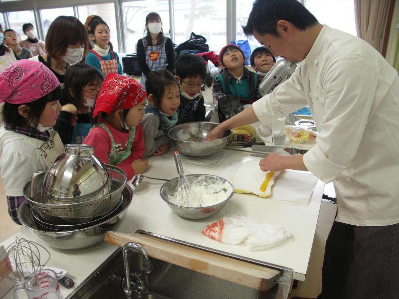 PTA親子行事で「ロールケーキ作り」をしました。