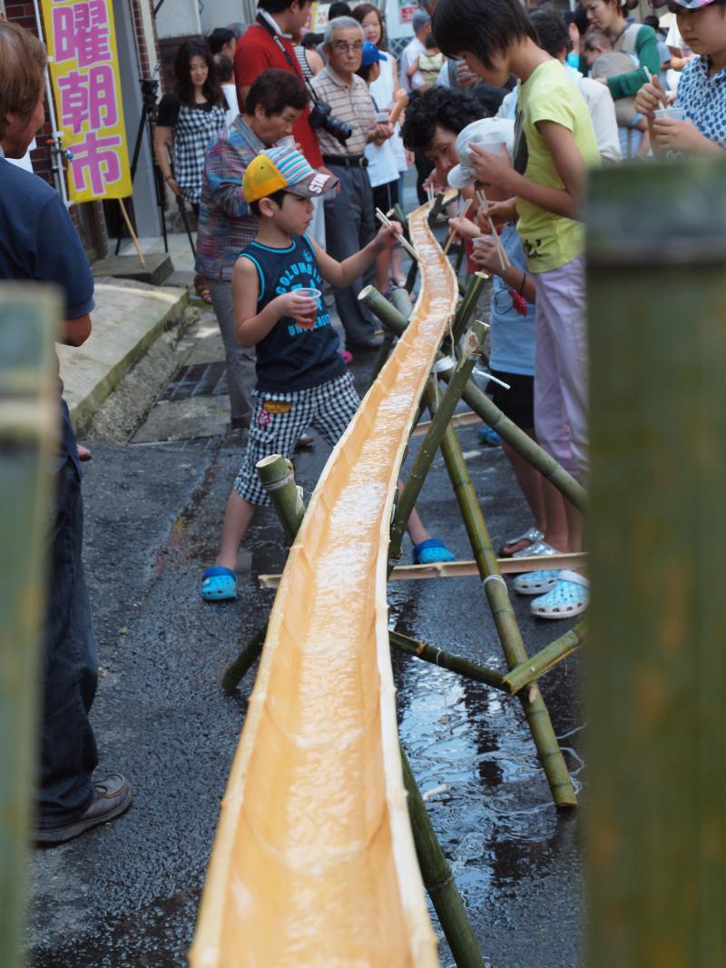瀬見温泉旅館組合主催の「朝流しそうめん大会」