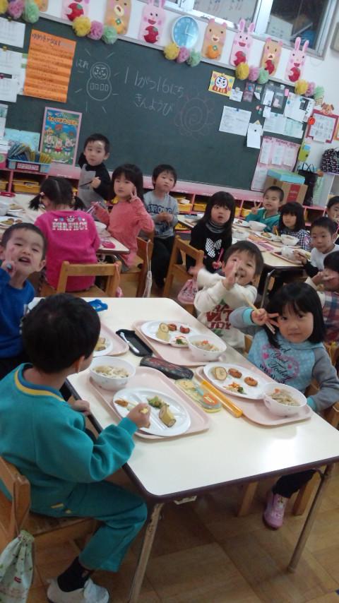 今日のメニューはみんなが大好きなうどんヽ(^^)ニコニコのうさぎ組さんです♪