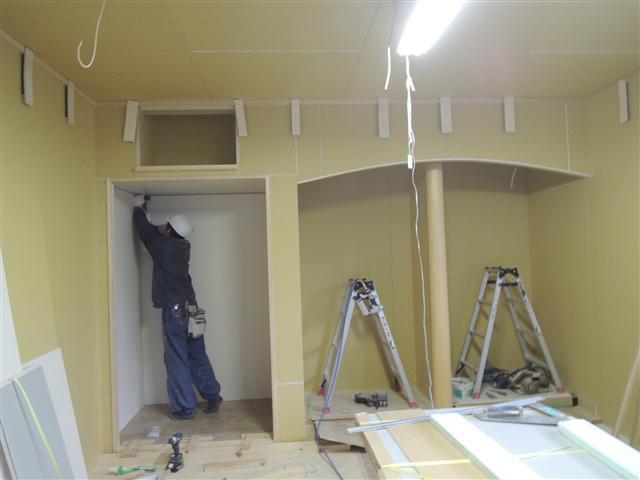 クロスやさんも昨日から乗り込みしており、壁、天井のパテ処理中です。