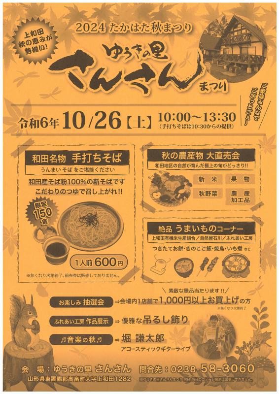 ●「ゆうきの里さんさんまつり」開催! 10/26(土)