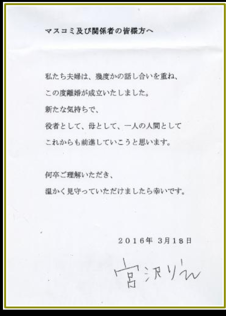 2016年3月18日に女優 宮沢りえさんの離婚が発表されました。宮沢りえさん自身が各報道局に送ったFAXの内容よりも、サインの方が話題になってしまったみたいです。『40過ぎてあの字は痛い』『宮沢りえのギャルみたいな字は意外すぎる』など。ひとのことは言えませんが、確かに!「字が汚いから直したほうがいい。」なんて、なかなか本人には言えない。とのコメントも。そうだよね!