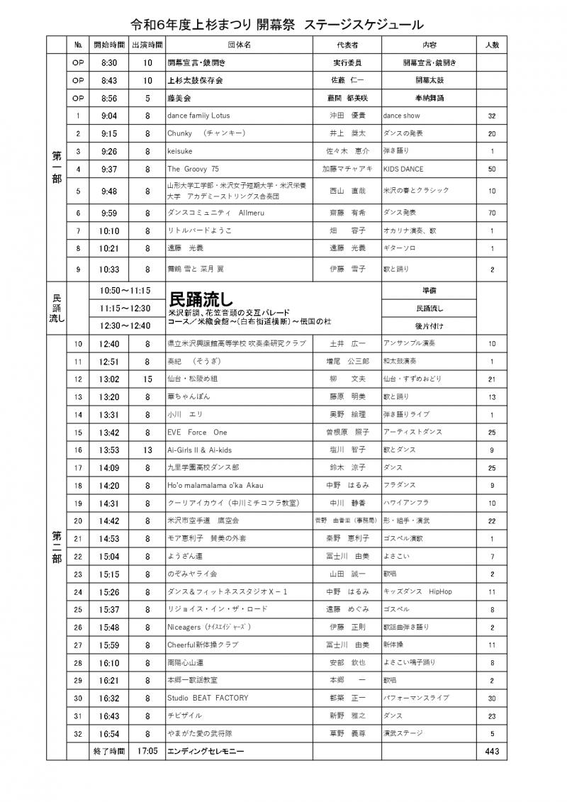 ●令和6年度上杉まつり開幕祭4月29日ステージイベントタイムスケジュール