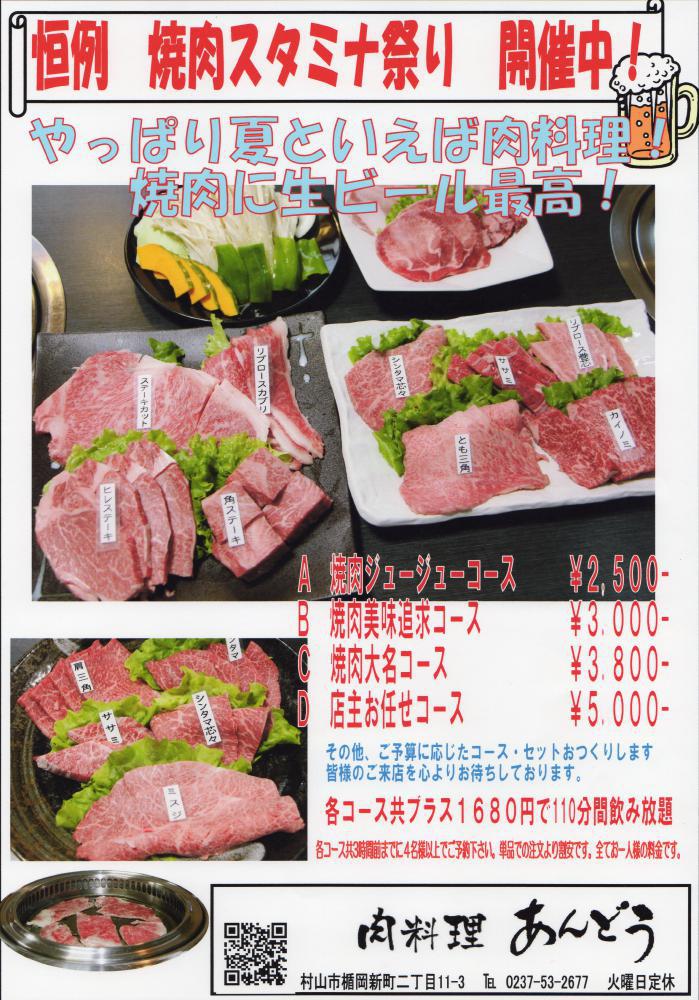 ●恒例 焼肉スタミナ祭り 開催中! 肉料理あんどう