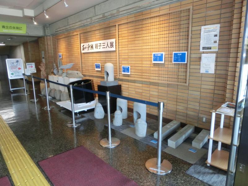 村山総合支庁ロビーに展示やすらぎ石室・浄音塔・石あかり・草木塔・県美展石工芸作品展示2018年3月15日まで展示されております。