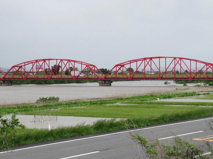 5月19日午前9時30分現在の赤川水位です。昨日より増水しています。明け方には畑まで冠水したものと思われます。