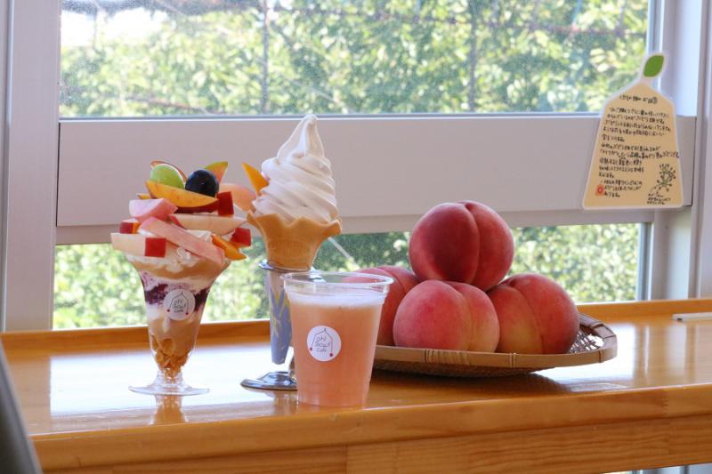ももパフェ、ももソフト、ももジュース。もも、もも、ももなお時間をお過ごしください。もも狩りもできます。