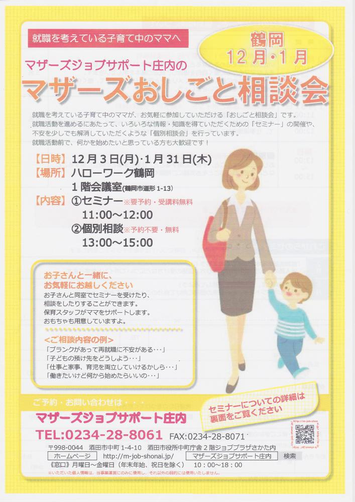 ●マザーズおしごと相談会in鶴岡 12・1月開催のお知らせ