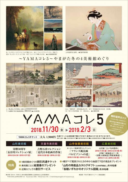 11月30日(金)から【YAMAコレ5〜やまがた冬の4美術館めぐり】がはじまります!山形美術館、山寺 後藤美術館、天童市美術館、広重美術館の4館で、館蔵コレクションを一堂に公開します。お得な共通チケットの販売、絵葉書プレゼント、近隣カフェの割引サービスなどの特典もありますので、ぜひこの機会に山形の美術館めぐりをお楽しみください。(展覧会のスケジュール、休館日、開館時間は各館で異なりますので、事前にご確認の上お出かけください)