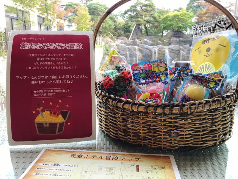 ただいま夏休みイベントを開催中です♪元気があり余って、温泉とお部屋でゆっくり過ごすだけなんて物足りないよ!というお子様には特におすすめです。体を使って頭を使って、夏の思い出にたくさんお楽しみください♪♪――――――――――――――――――★【8/8〜8/26】『館内なぞなぞ大冒険』館内に隠された10個のなぞなぞを探しに行こう!冒険マップをもとになぞなぞを見つけて問題を解けるかな!?全問正解するとイイモノがもらえるかも!時 間:いつでもどうぞ(B1・1・2Fフロア)参加費:無料★【8/10〜16】『縁日コーナー』「射的」「スーパーボールすくい」「ボウリング」の3つのゲームが楽しめるよ!大人の方と一緒に参加して景品をゲットしよう♪外れても残念賞があるよ★時 間:20時〜21時(ロビー)参加費:2回で200円★【8/10〜16】『マジックショー』夕食後はロビーに集合!君はいくつのマジックを見破れるかな!?お子様も大人も楽しめますよ♪時 間:20時過ぎ〜20分程参加費:無料――――――――――――――――――美味求真の宿 天童ホテルhttp://www.tendohotel.co.jp/