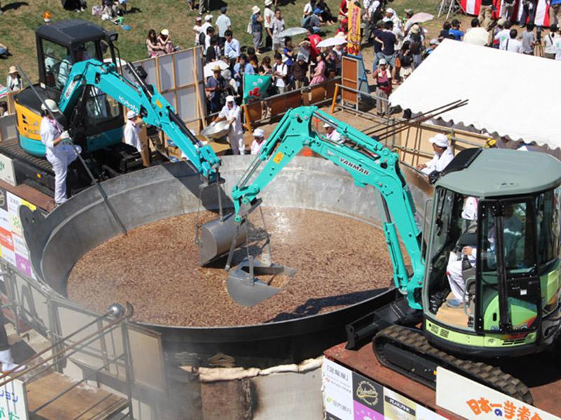 9月15日に『日本一の芋煮会フェスティバル』が山形市で開かれます。馬見ヶ崎川の河川敷にて《直径6.5m》の大鍋で《3万食》の芋煮が作られる、山形名物ビッグイベント!芋煮に使う食材は山形県産!里芋、牛肉、ねぎ、こんにゃく、水、どれも地元の自慢の食材ばかりです。それを、なんとおたまの代わりに《大型重機バックフォー》でかき混ぜて煮込む!おいしい芋煮を、みんなで食べよう!ぜひ実際に見て、食べていただきたいイベントです♪ーーーーーーさらに今年は、天童温泉から<専用バスツアー>が出発します!戻ってきたらそのままチェックインができる時間帯となります。芋煮を食べて温泉に入って、1泊して山形の初秋をご満喫ください♪もちろん、宿泊だけではなくお日帰りでもご参加いただけますのでお気軽にご利用くださいませ!!>>日本一の芋煮会バスツアーに申込む●ツアー料金大人 5,800円お子様 4,500円未就学児 4,500円(座席を使用する場合)●ツアーのスケジュール12:00 ほほえみの宿滝の湯(天童ホテルの隣宿です)12:10 松伯亭あづま荘12:45/15:00 日本一の芋煮会会場15:30 松伯亭あづま荘15:40 ほほえみの宿滝の湯●会場までの交通の心配いらず!会場周辺は駐車場もあまりなく、マイカーで行くと停められない、停められても会場まで歩いて30分などの問題がありますが、本ツアーにご参加いただければ天童温泉の旅館の駐車場にお停めいただきバスに乗り、降りたところが会場となります。●芋煮茶屋で芋煮食べ放題!大型テントの特設会場で、席に座ってゆっくり食べられるスペシャルコーナーです。山形名物の芋煮(牛肉しょうゆ味・特別芋煮一杯)、おにぎり、ドリンクのセットをご提供。(牛肉しょうゆ味芋煮のみおかわり自由)※バスツアーの主催はDMC天童温泉ですーーーーーー『第31回 日本一の芋煮会フェスティバル』日時:2019年9月15日(日)場所:山形市馬見ヶ崎川河川敷(双月橋付近)時間:8:30オープニングイベント 9:00セレモニー 9:30芋煮配食開始(整理券順)※芋煮は300円の協賛金で食べられます。※当日は芋煮引換用の整理券が配られます美味求真の宿 天童ホテルhttp://www.tendohotel.co.jp