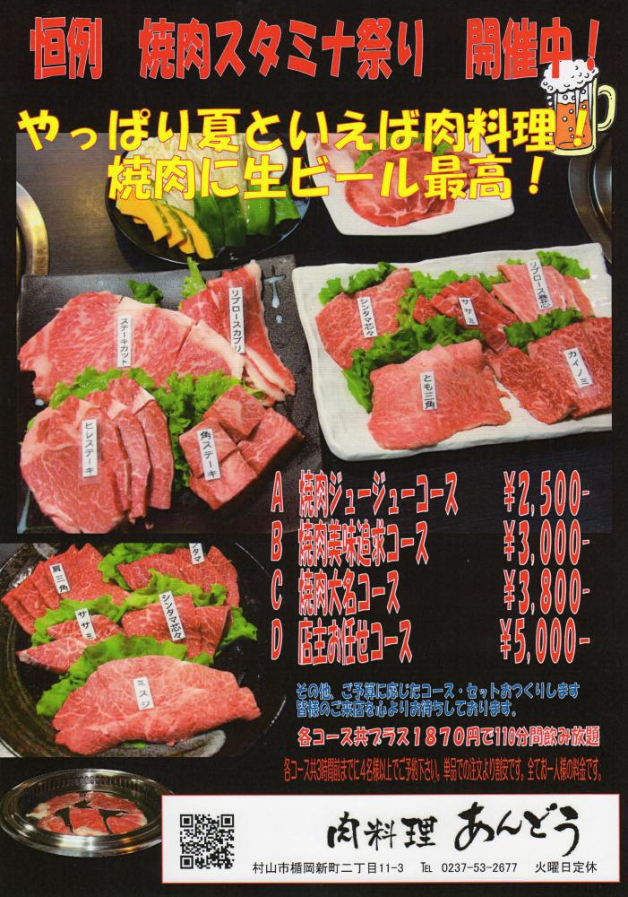 ●恒例 焼肉スタミナ祭り 開催中! 肉料理あんどう