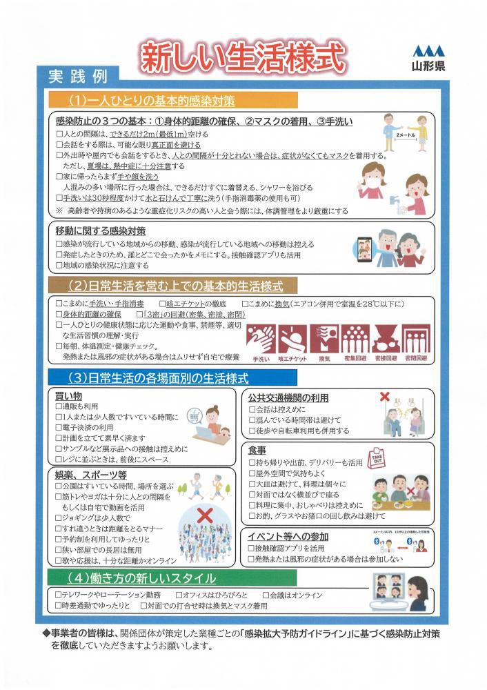 ●山形県からのお知らせ 「新しい生活様式」の実践について