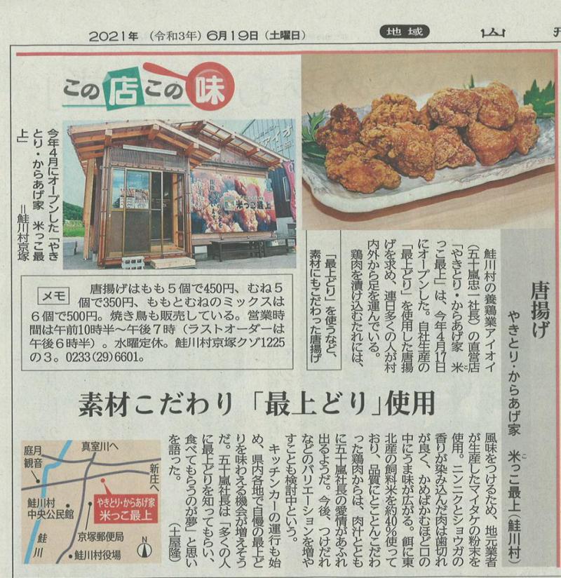 ●やきとり・からあげ家「米っこ最上」山形新聞